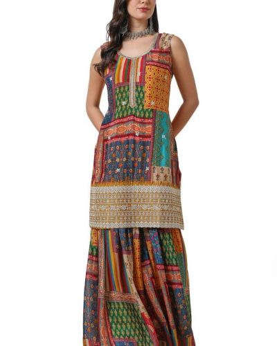 Mustard Tile Print Chinon Suit Set with Dupatta